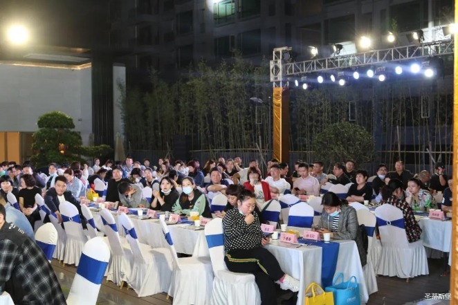 经销商晚宴当日晚6时许,以【乘“圣”跨越】为主题的,mile米乐集团集团集团第45届国际家具展接待晚宴暨2020年度优秀经销商颁奖盛典,在营销中心四楼景观花园隆重举行,来自全国各地的经销商朋友欢聚一堂,共同分享一场精彩纷呈的晚宴。